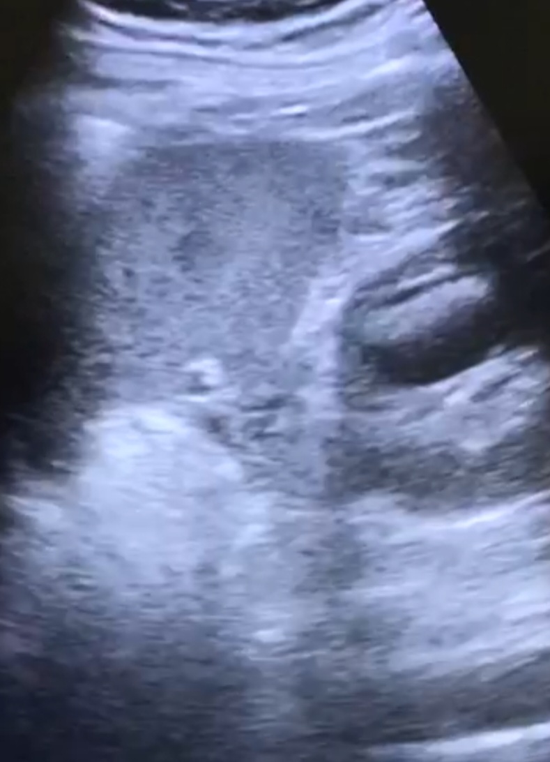 Se solicita TAC para mejor valoración: Quiste en polo superior del riñón izquierdo, con leche cálcica en interior, que comunica con el sistema excretor.