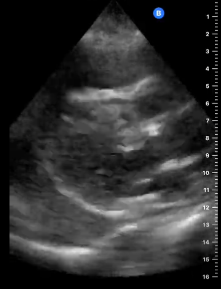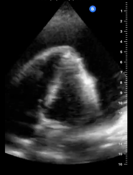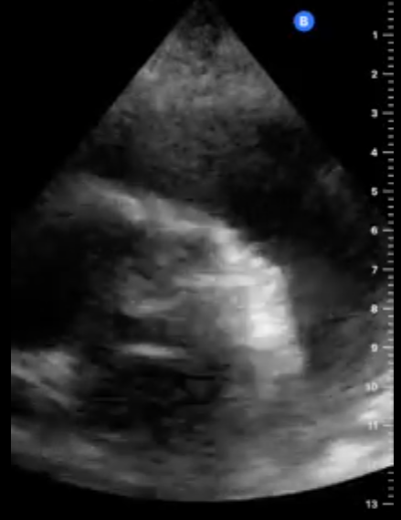 Ante el cuadro de hipotensión, Se decide realizar ecografía clínica urgente para valoración sospechando la existencia de taponamiento cardiaco.