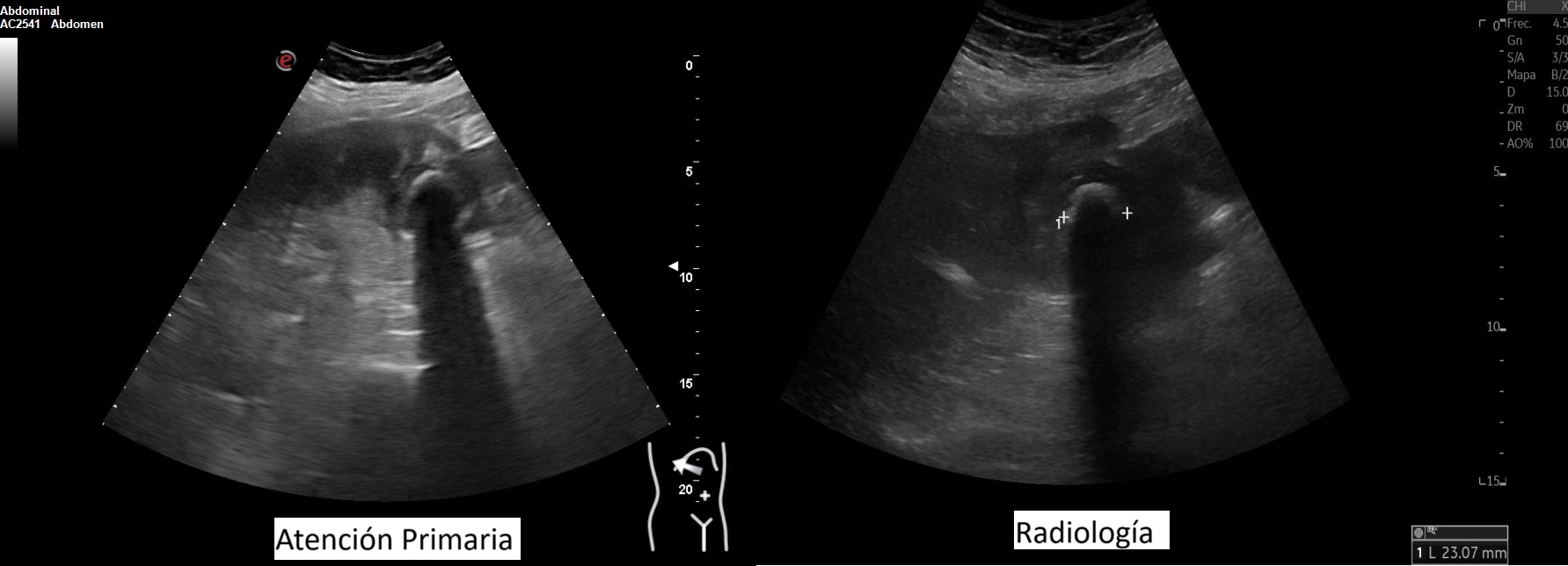 La ecografía es una prueba rápida, de gran utilidad para la orientación diagnóstica en los casos de dolor abdominal agudo. En muchas situaciones puede confirmar la sospecha inicial y en otras descartar causas frecuentes. En este caso se trataba de una presentación atípica con unos hallazgos ecográficos difíciles de interpretar. Esto no nos debe restar confianza en nuestras habilidades ya que como vemos en esta ocasión, tampoco un mayor número de pruebas complementarias fue suficiente para dar con un diagnóstico definitivo.