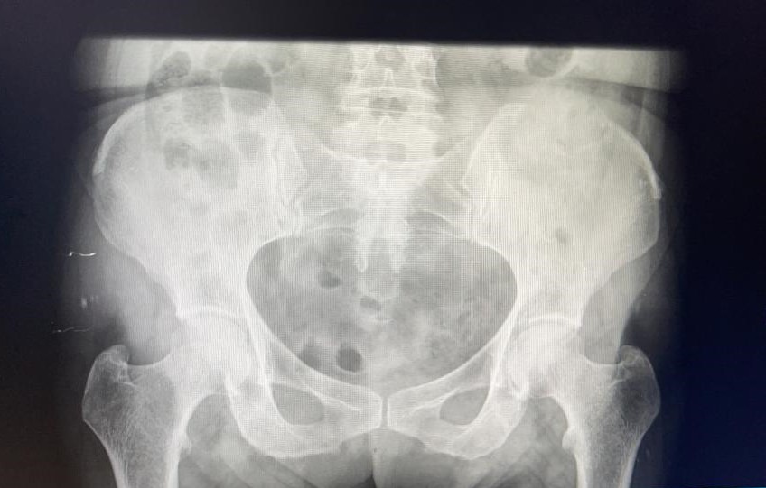 Rx pelvis: borrado de corticales en cresta ilíaca izquierda.
