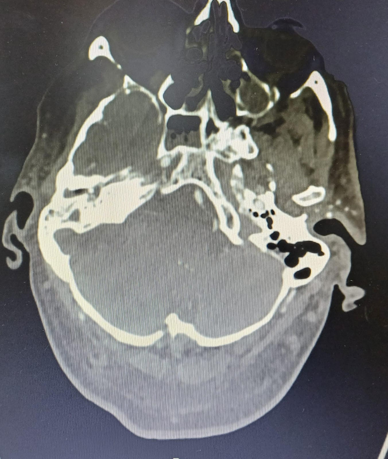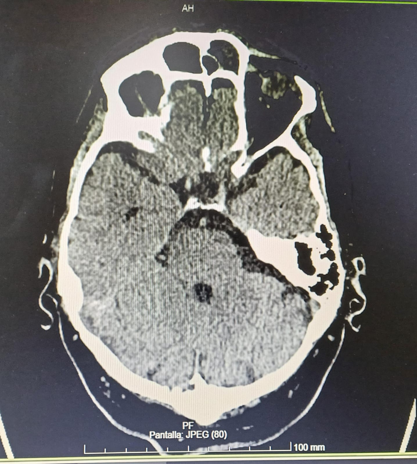 Hombre de 69 años, acude a Urgencias Hospitalarias por deterioro del nivel de consciencia. Refiere cuadro catarral de 14 días sin mejoría pese a tratamiento sintomático. Últimos días asocia cefalea y otalgia bilateral. Valorado en Urgencias de atención primaria como Otitis Media Aguda (OMA) tratado con Amoxicilina. En últimas 24 h alteración del nivel consciencia.