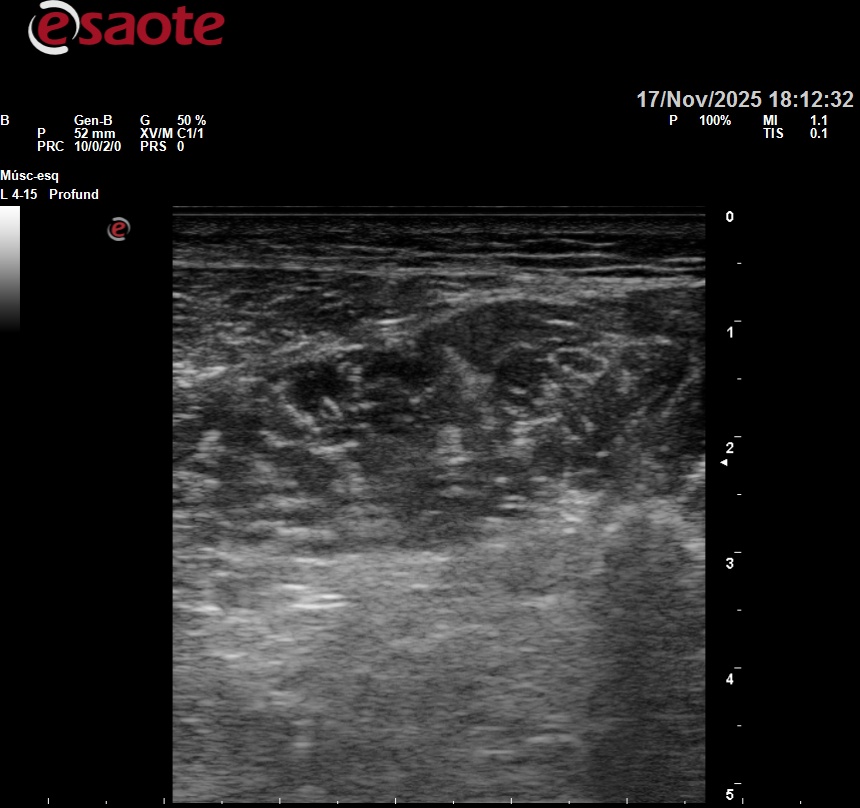Se realiza una ecografía en el propio PAC, que evidencia una alteración estructural compatible con rotura fibrilar.