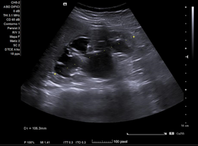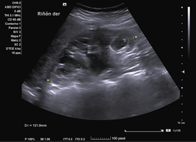 Juicio Clínico: Riñón derecho con dilatación de su sistema excretor.