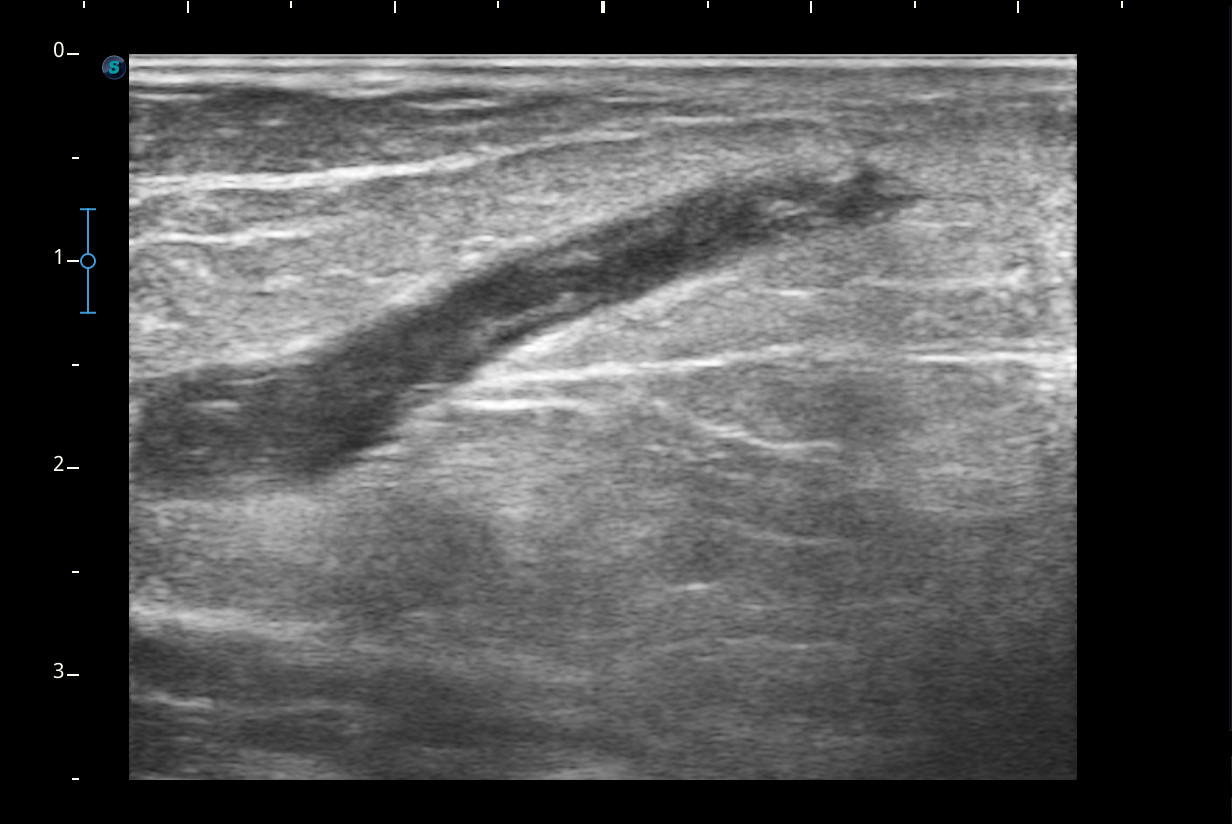 No antecedentes personales de interés. Niega traumatismo previo ni sobreesfuerzos. En la EF se palpa zona empastada en cara interna del brazo derecho, eritematosa, edematosa y dolorosa. Se realiza ecografía del brazo en el punto de atención.