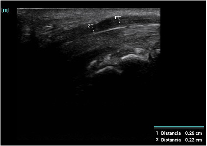 Se sigue clínica y ecográficamente a la paciente en consulta. Se comprueba mediante ecografía la liberación del nervio mediano con la segunda intervención, acompañada de la ausencia de sintomatología en la paciente.