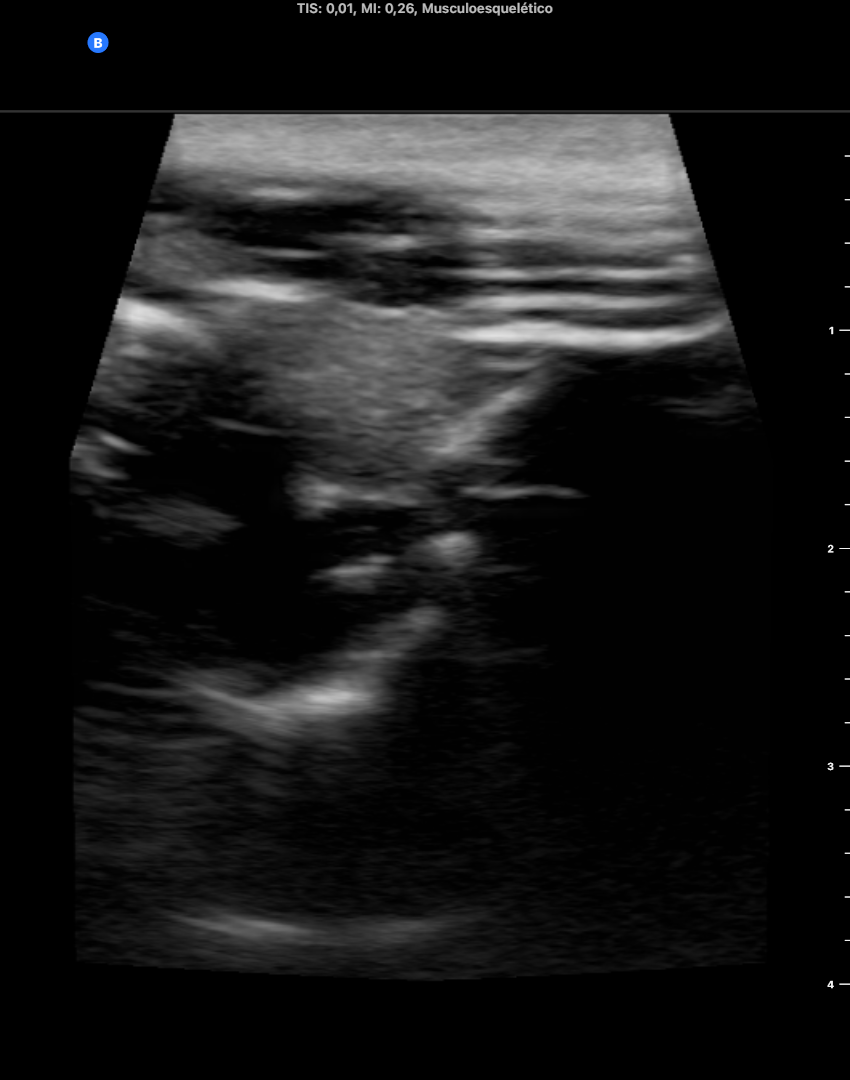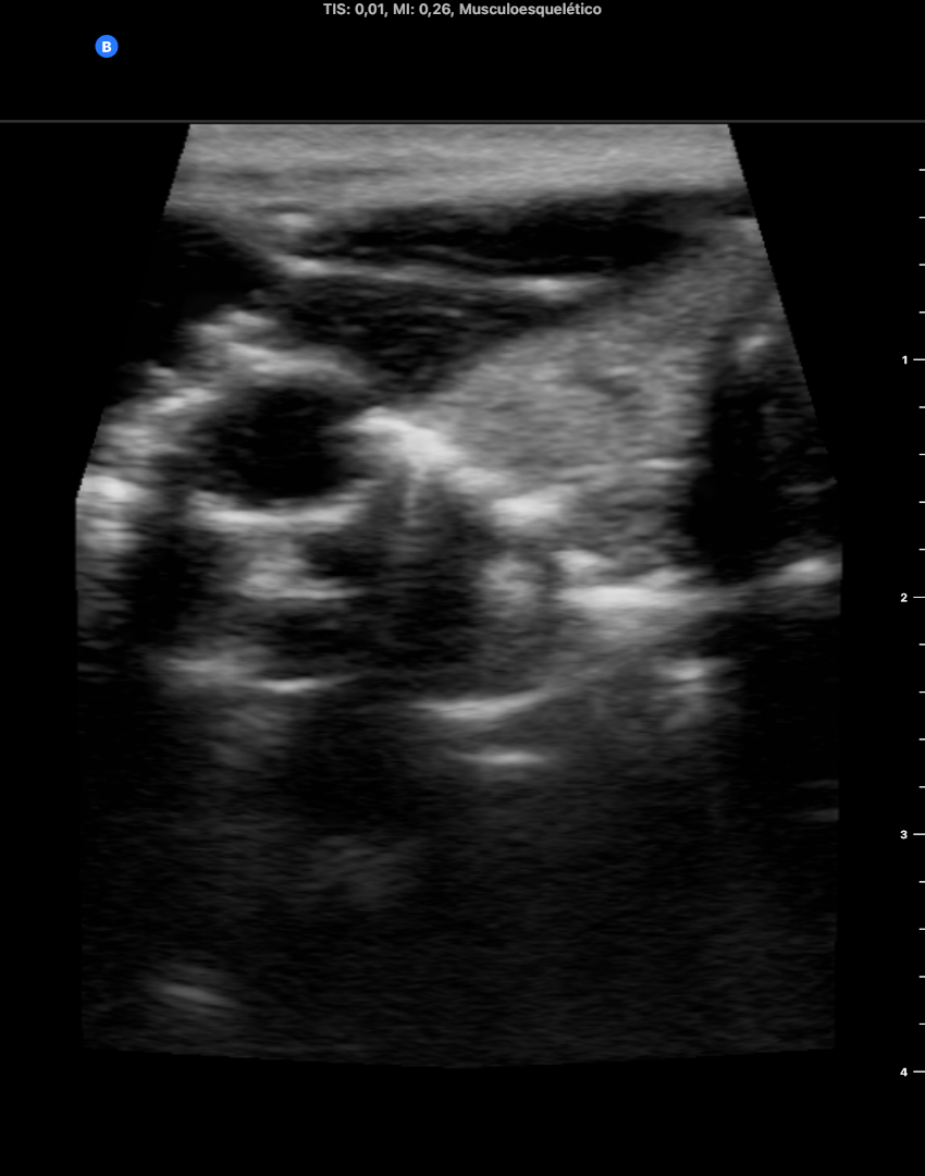 Ecoscopia tras 1 semana del diagnóstico ecoscópico normal a todos los niveles anatomicos (cervical, pulmonar, cardíaco, abdominal).