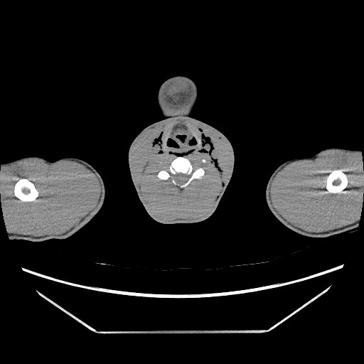 Radiografía: enfisema subcutáneo a nivel cervical bilateral, no neumotórax ni neumoperitoneo ni neumomediastino objetivable.
