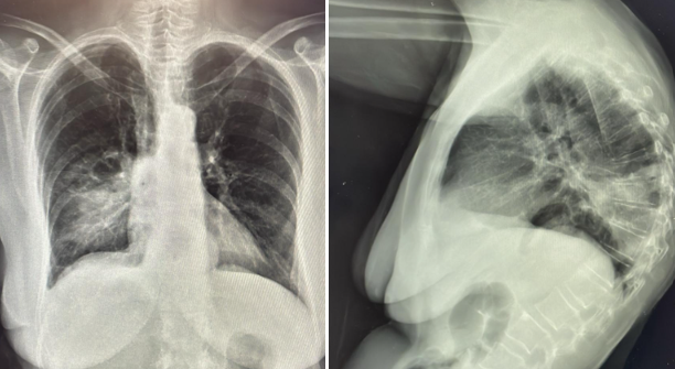 Además de realizar analítica, antigenuria, hemocultivos y gasometría venosa con lactato, solicitamos una RX Tórax PA y Lateral que confirma nuestro diagnóstico.
