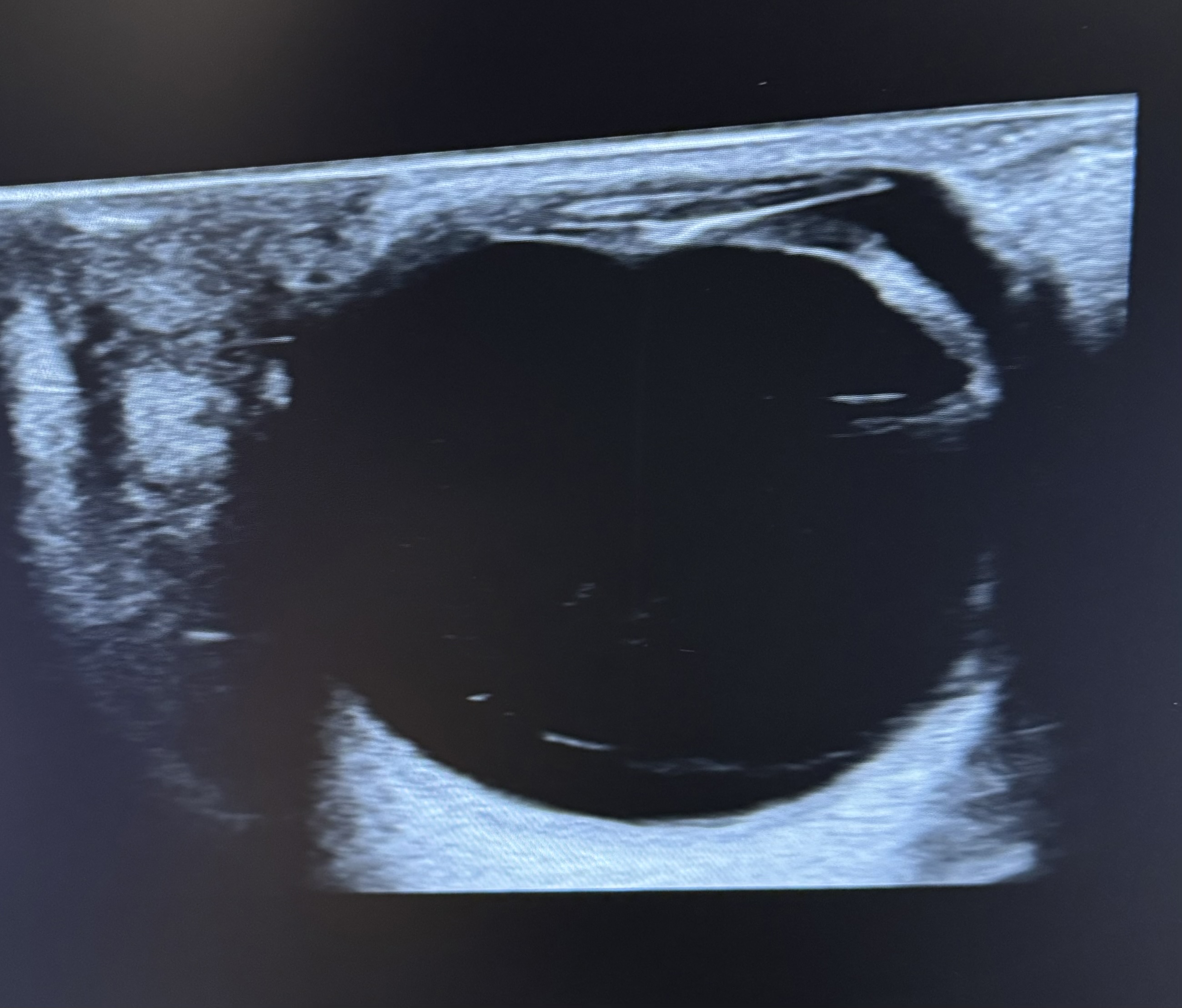 Ante la sospecha de desprendimiento de vítreo posterior (DVP) se realiza ecografía clínica. En la zona posterior del humor vítreo, anterior a la papila, se objetiva una línea fina, hiperecogénica y cóncava que hace sospechar DVP.