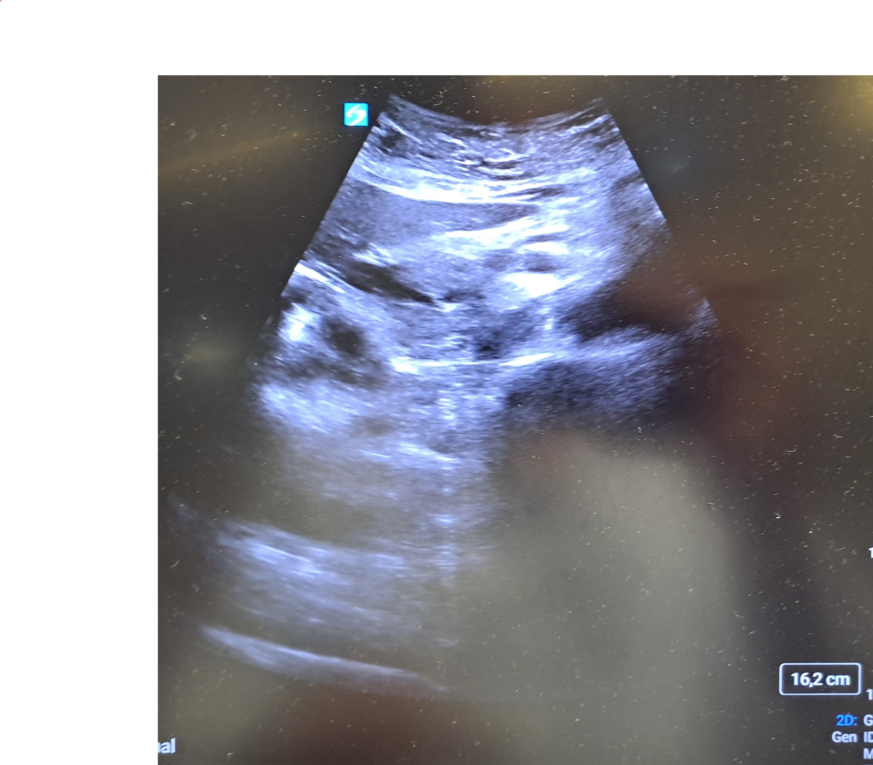 En este caso la ecografía clínica permitió dirigir el estudio y ayudar a la decisión de ingresar a la paciente para completar el estudio que hubiera sido complicado de manera ambulatoria.