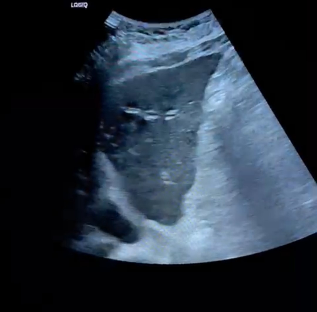 La paciente acude tras una semana de tratamiento antibiótico con cultivo de orina negativo. Persiste febrícula y molestias en hipocondrio derecho. Realizamos ecografía clínica donde se observa lesiones compatibles con metástasis. Se decide ingreso para estudio. Tras TAC de abdomen, TAC de tórax y colonoscopia no se observa tumor primario. Se decide una colangio-RM donde se observa tumoración quística en páncreas con anatomía patológica compatible con adenocarcinoma mucinoso de alto grado en páncreas.