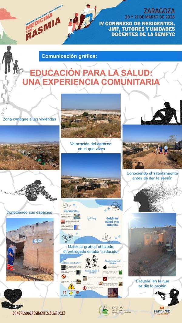 La presente comunicación gráfica describe una intervención de promoción de la salud desarrollada en un asentamiento ilegal, orientada a la mejora de la higiene ambiental, la gestión segura de residuos y la prevención de riesgos asociados a temperaturas extremas. El objetivo principal de la sesión fue fortalecer las capacidades de autocuidado de la población, considerando su contexto de alta vulnerabilidad social y la limitación de recursos.