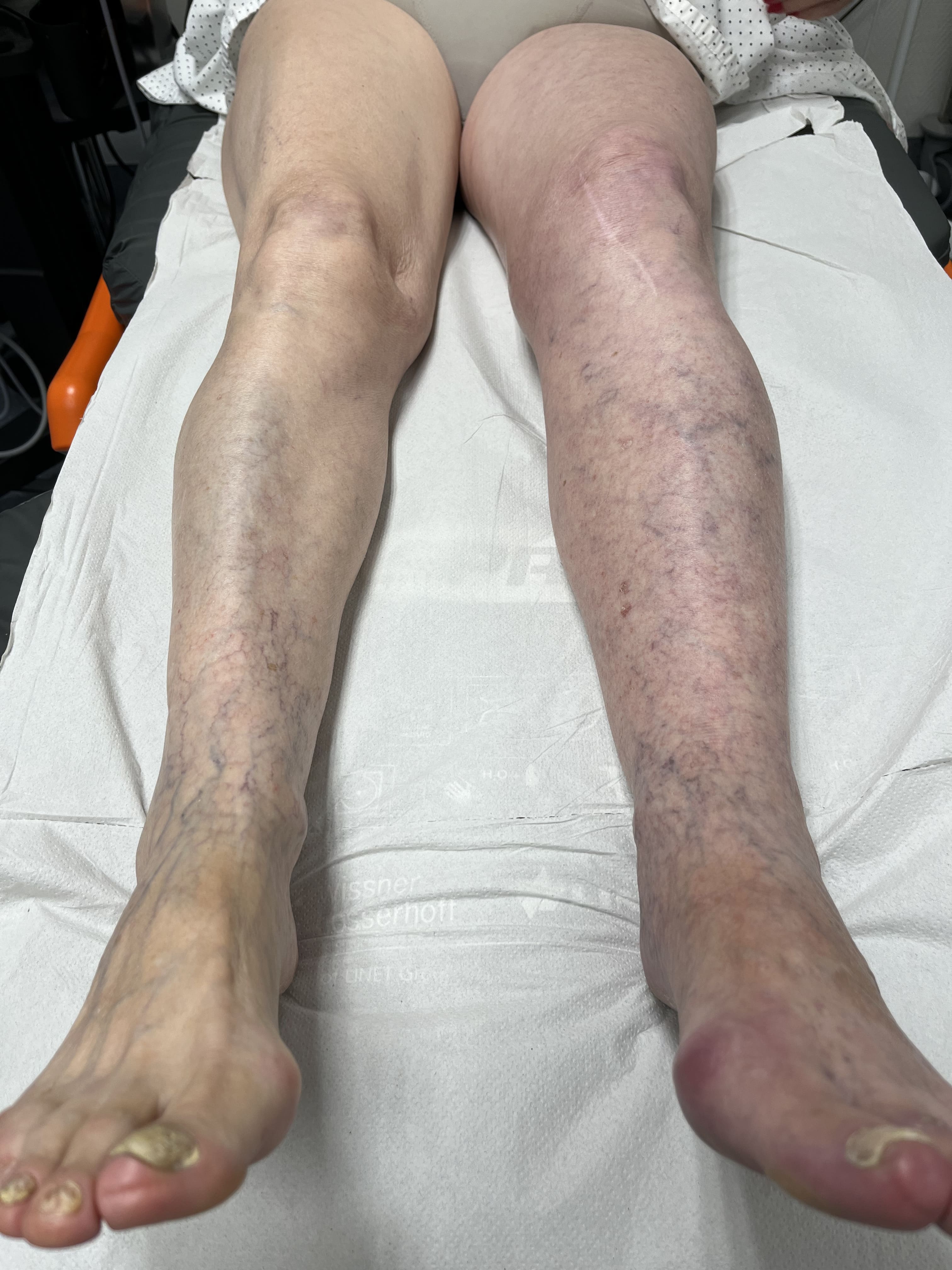 Paciente de 76 años sin antecedentes personales de interés, que consulta por edema indoloro y progresivo en EII y frialdad de 72 horas de evolución, después de vacunarse de gripe y COVID. No presenta otros datos de alarma ni refiere cirugía, inmovilización ni antecedentes oncológicos en los últimos meses.