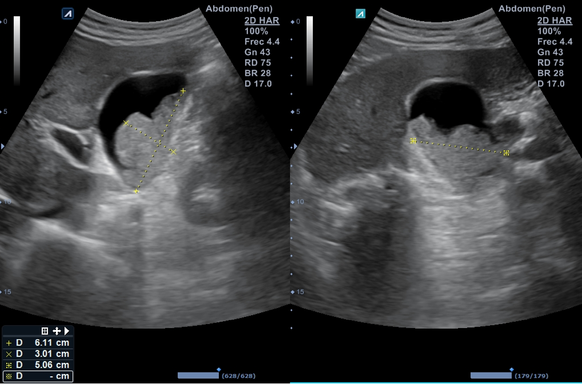 Actualmente el paciente se encuentra en seguimiento por su médico de atención primaria dónde se realizan ecografías abdominales para vigilar el crecimiento de la imagen intravesicular que continúa aumentando de tamaño.En muchas ocasiones la ecografía es la prueba oro, ya que es capaz de visualizar lo que otras pruebas, cómo en este caso el TAC, no pueden ver.