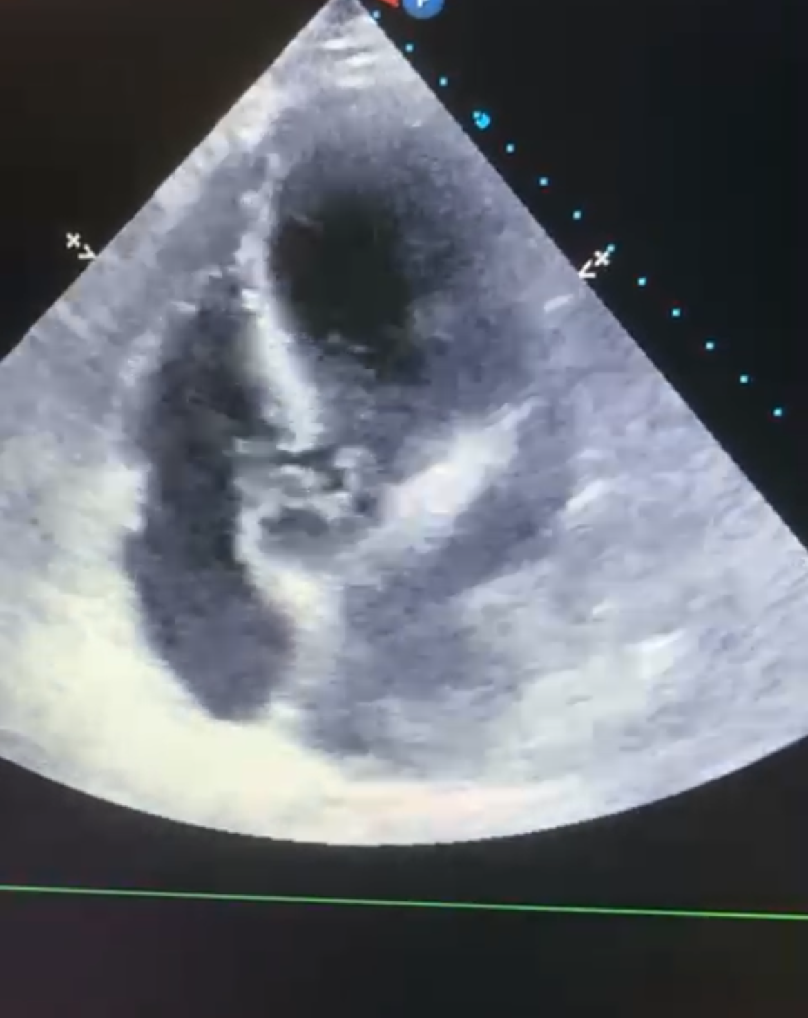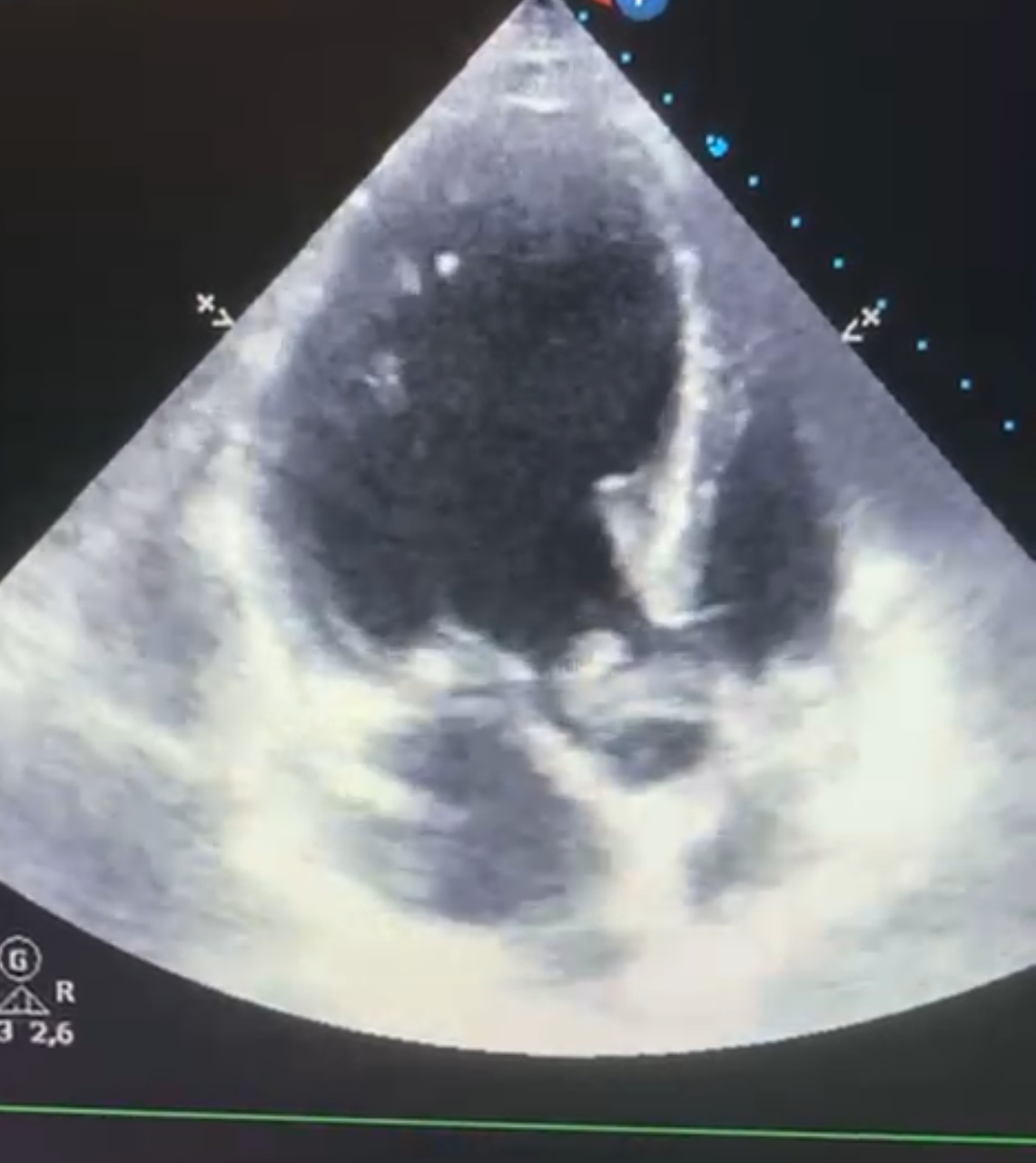 Tras realización de analítica con leucocitosis con desviación izquierda, radiografía de tórax anodina y sin otro foco infeccioso aparente se decide ecocardiografía a pie de cama.