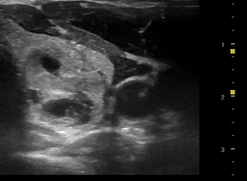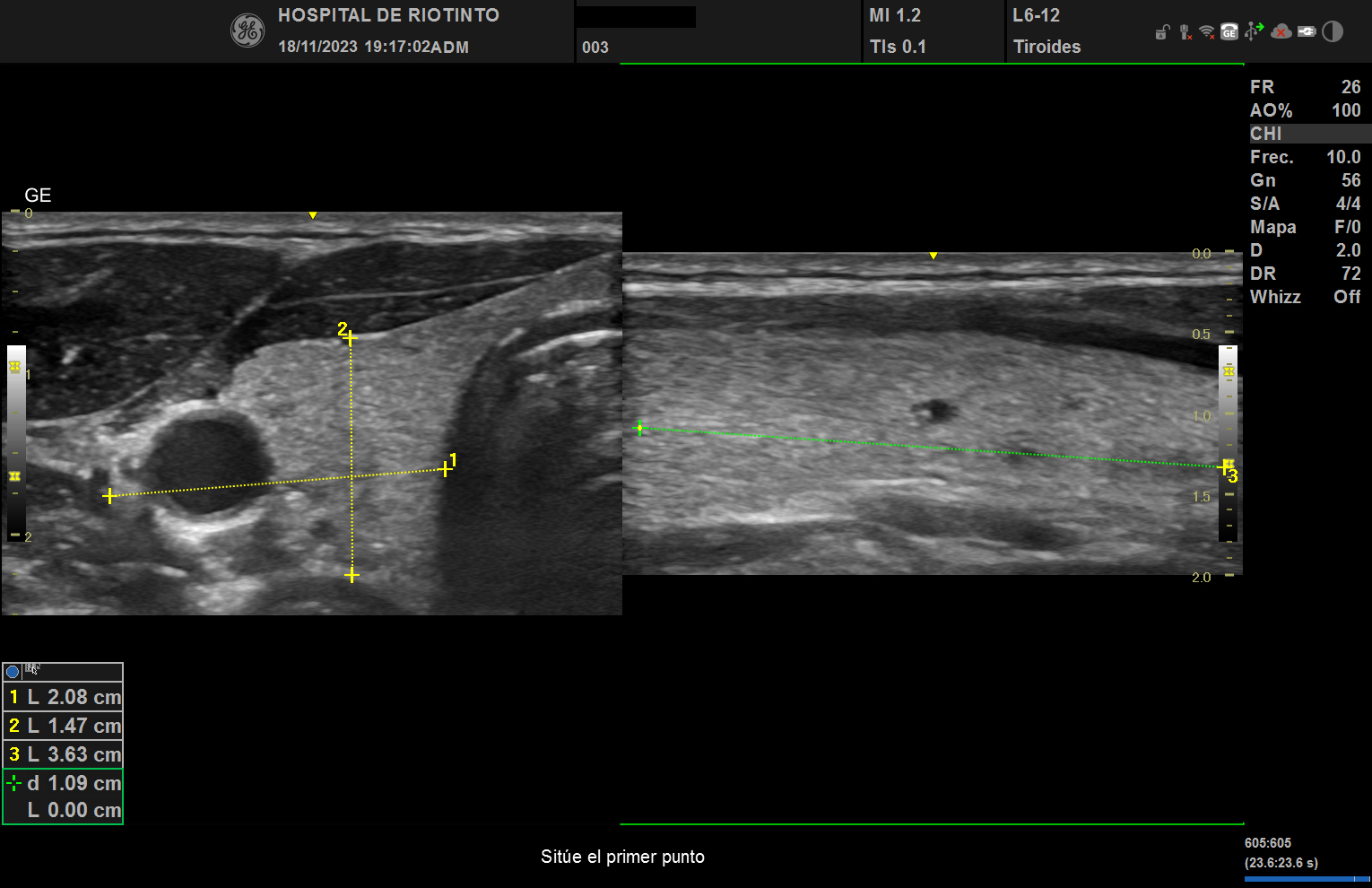 Paciente de 47 años de edad sin antecedentes de interés, acude a consulta de urgencias por cuadro de hallazgo incidental de lesión nodular actualmente niega sintomatología cardinal, ni signos tiroideos.