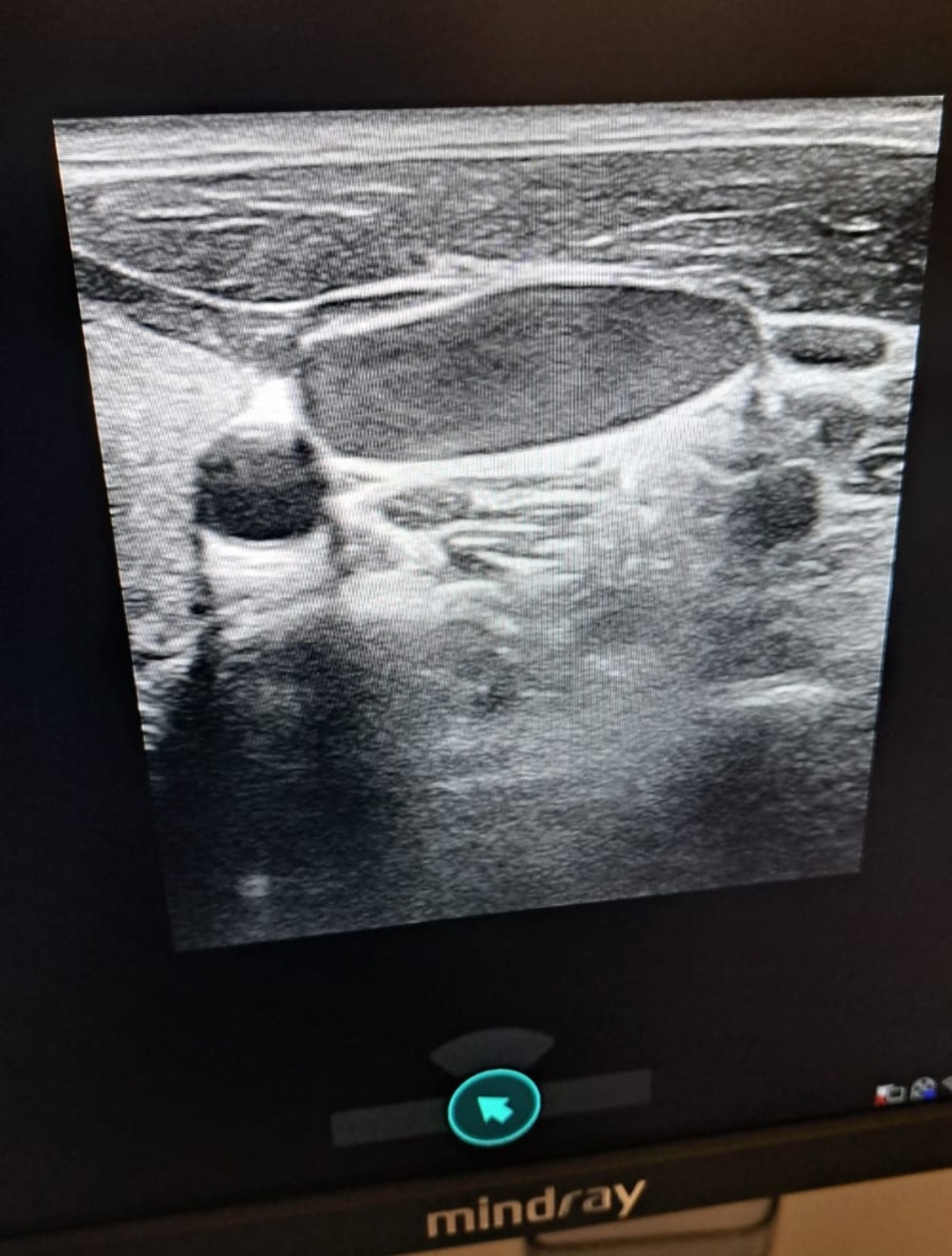 Se decide ante esta exploración física ecografía en el centro de salud en ese momento: tiroides normal, no adenopatías de características sospechosas de malignidad; se observa vena yugular izquierda con flujo aplanado monofásico, con aumento del tamaño de esta y que comprime perfectamente.