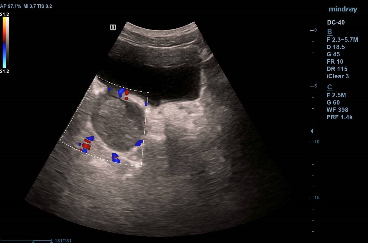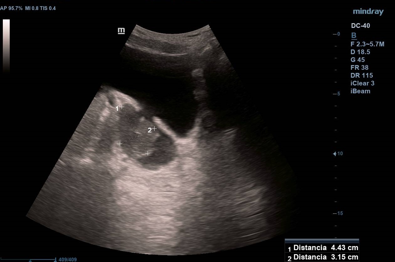 Varón de 79 años, exfumador, con antecedentes de HTA, DM2 y HBP. En tratamiento con Enalapril/Hidroclorotiazida, Metformina/Sitagliptina, Simvastatina y Tamsulosina/Dutasteride. Hace un mes presentó un episodio de hematuria macroscópica, tratado con fosfomicina. Al persistir, fue derivado a Urología preferente, siendo citado en 2 meses. Tres semanas después acude de urgencia al centro de salud por nuevo episodio de hematuria. Es citado al día siguiente con repleción vesical para una ecografía clínica.