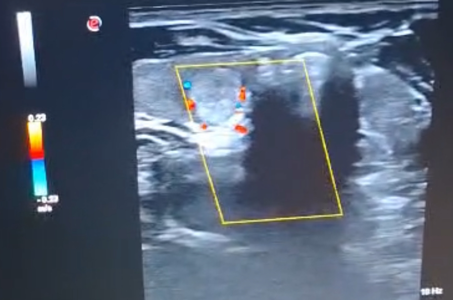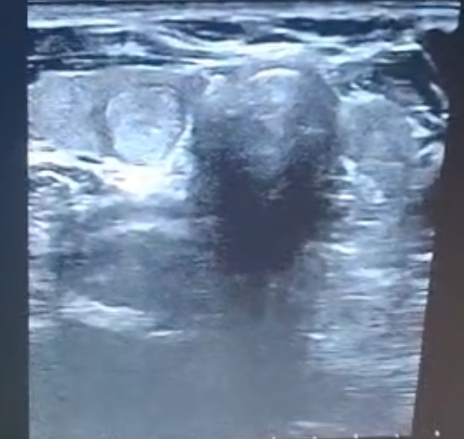 Al disponer de ecógrafo en el centro de salud se decide realizar ecografía de cuello para valoración según la clasificación de Sistema de Informes y datos de imágenes tiroideas (TI-RADS) con respecto a criterios ecográficos de malignidad. Además se revisan analíticas y nunca ha presentado alteración de hormonas tiroideas.