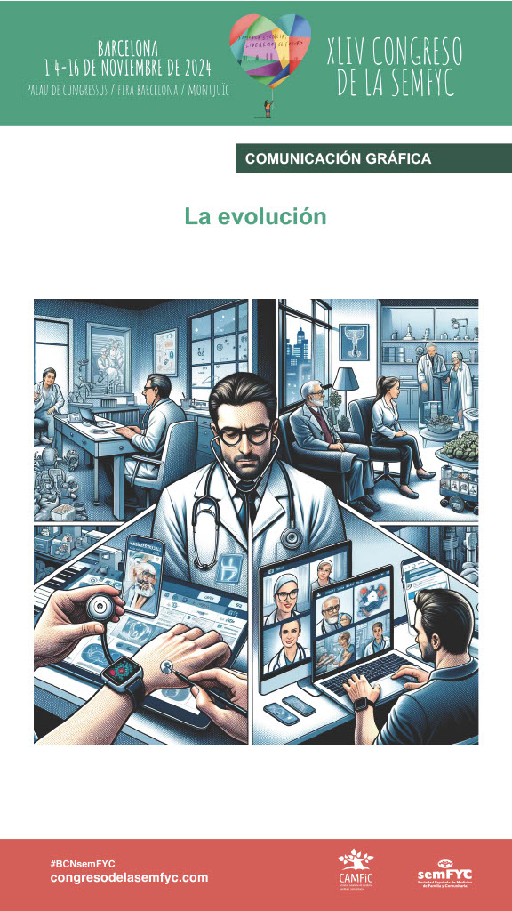 En este caso, la viñeta busca ilustrar la evolución de la tecnología en la Atención Primaria de salud, destacando cómo han cambiado las prácticas médicas a lo largo del tiempo mediante representaciones visuales claras y detalladas.