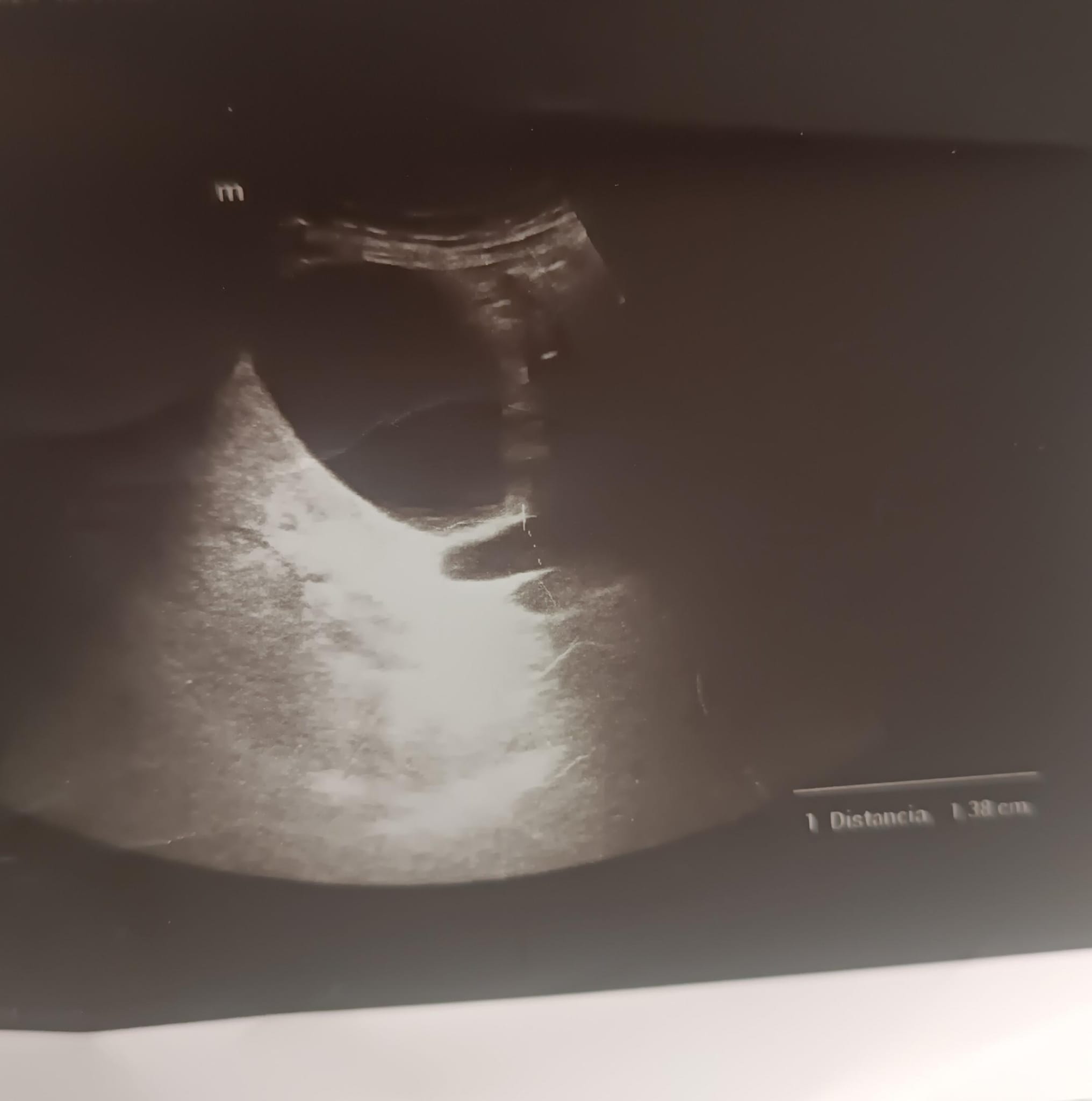 Murphy ecográfico positivo. Imagen de doble cañón, colédoco de 1.3cm, vesícula moderadamente distendida: vía biliar extrahepática dilatada. Datos de esteatosis hepática moderada/severa. Ante estos hallazgos que se decidió por derivación a urgencias hospitalarias en vez de una derivación a consulta de alta resolución.