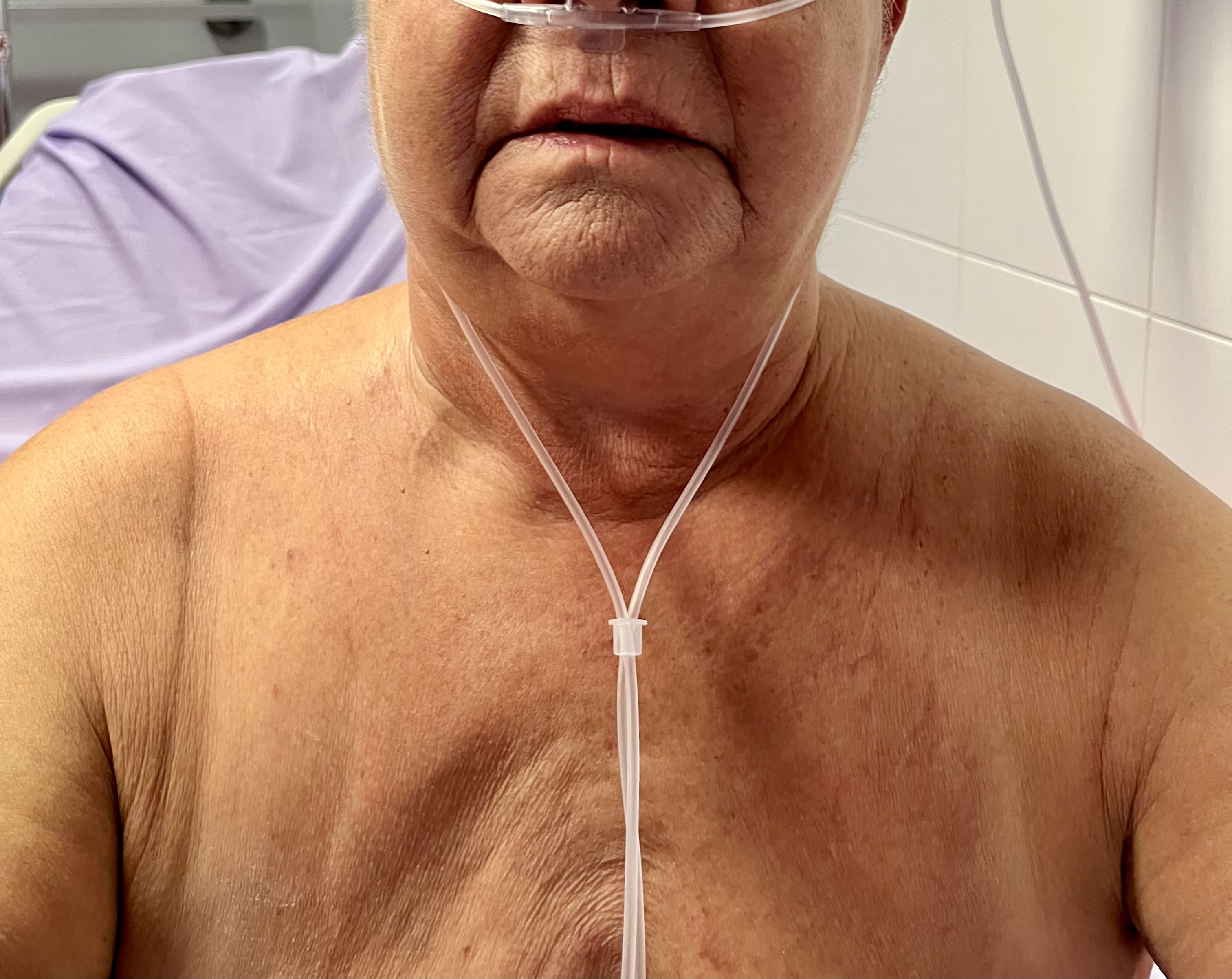 Consultó por cuadro de dos días de evolución de aumento de tamaño y dolor en ambas mamas, siendo diagnosticada de mastitis aguda bilateral. Acudió nuevamente por ausencia de mejoría junto a edema cervicofacial y disnea de mínimos esfuerzos.