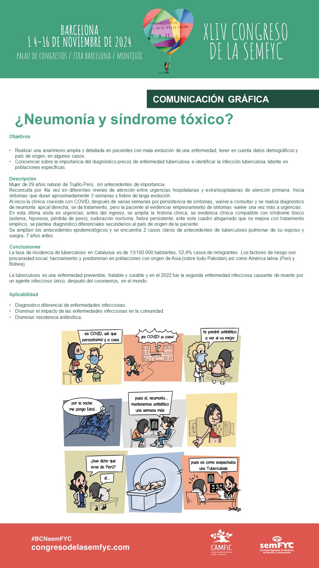 Al inicio la clínica coexiste con COVID, después de varias semanas por persistencia de síntomas, vuelve a consultar y se realiza diagnóstico de neumonía apical derecha, se da tratamiento, pero la paciente al evidenciar empeoramiento de síntomas vuelve una vez más a urgencias.