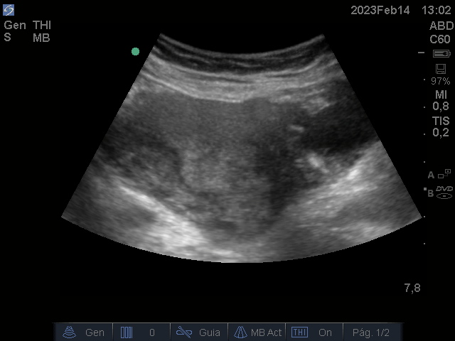 Si bien la ecografía no reemplaza la anamnesis ni el exámen fisico, en este caso no permitió reorientar el estudio de la paciente inicialmente interpretado como hematuria cuando en realidad se trataba una metrorragia de la postmenopausia, permitiendo remitir en forma preferente a la especialidad correspondiente.