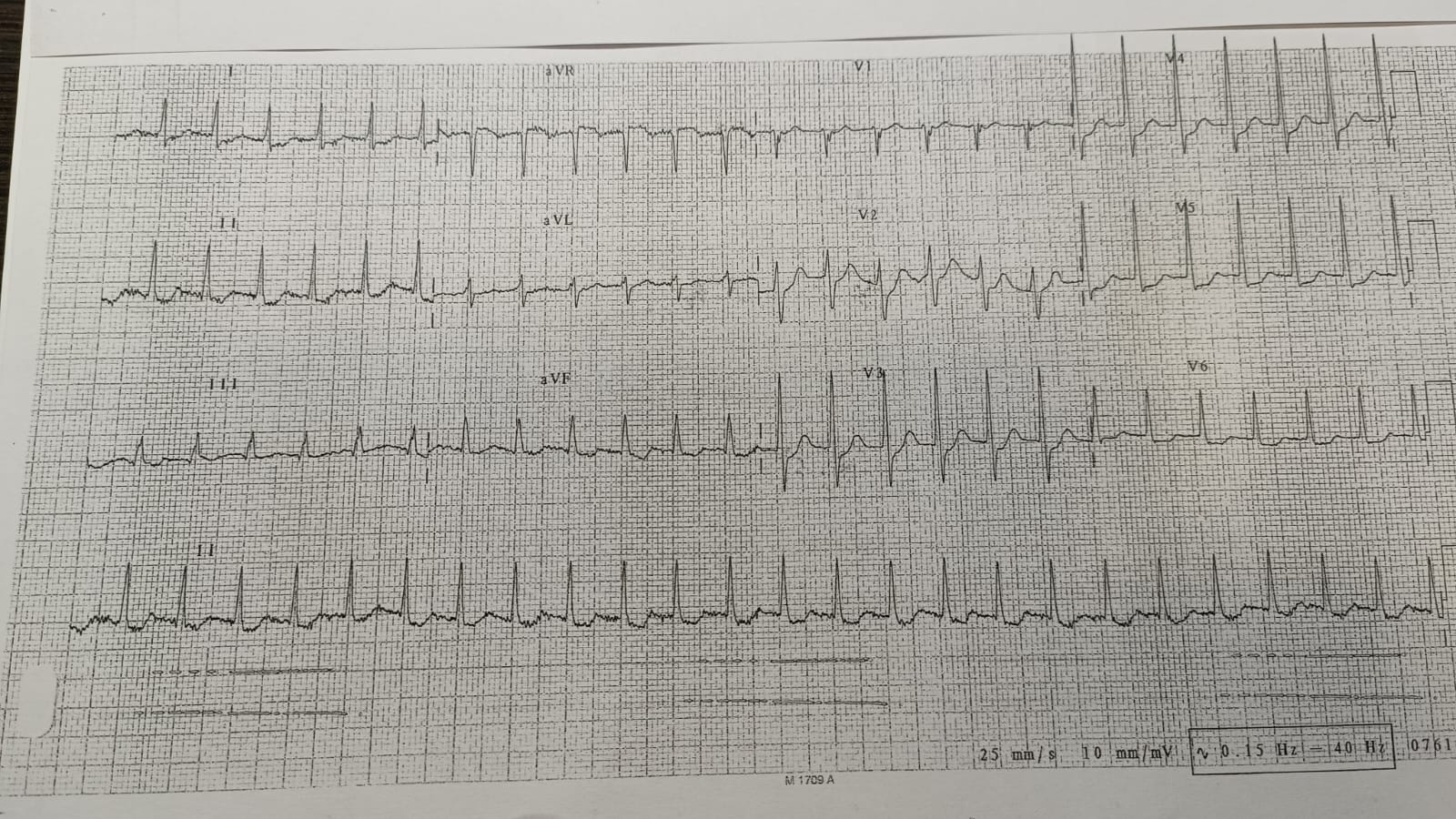 ECG: Ritmo sinusal (RS) a 70 lpm. Sin signos de crecimiento ventricular.