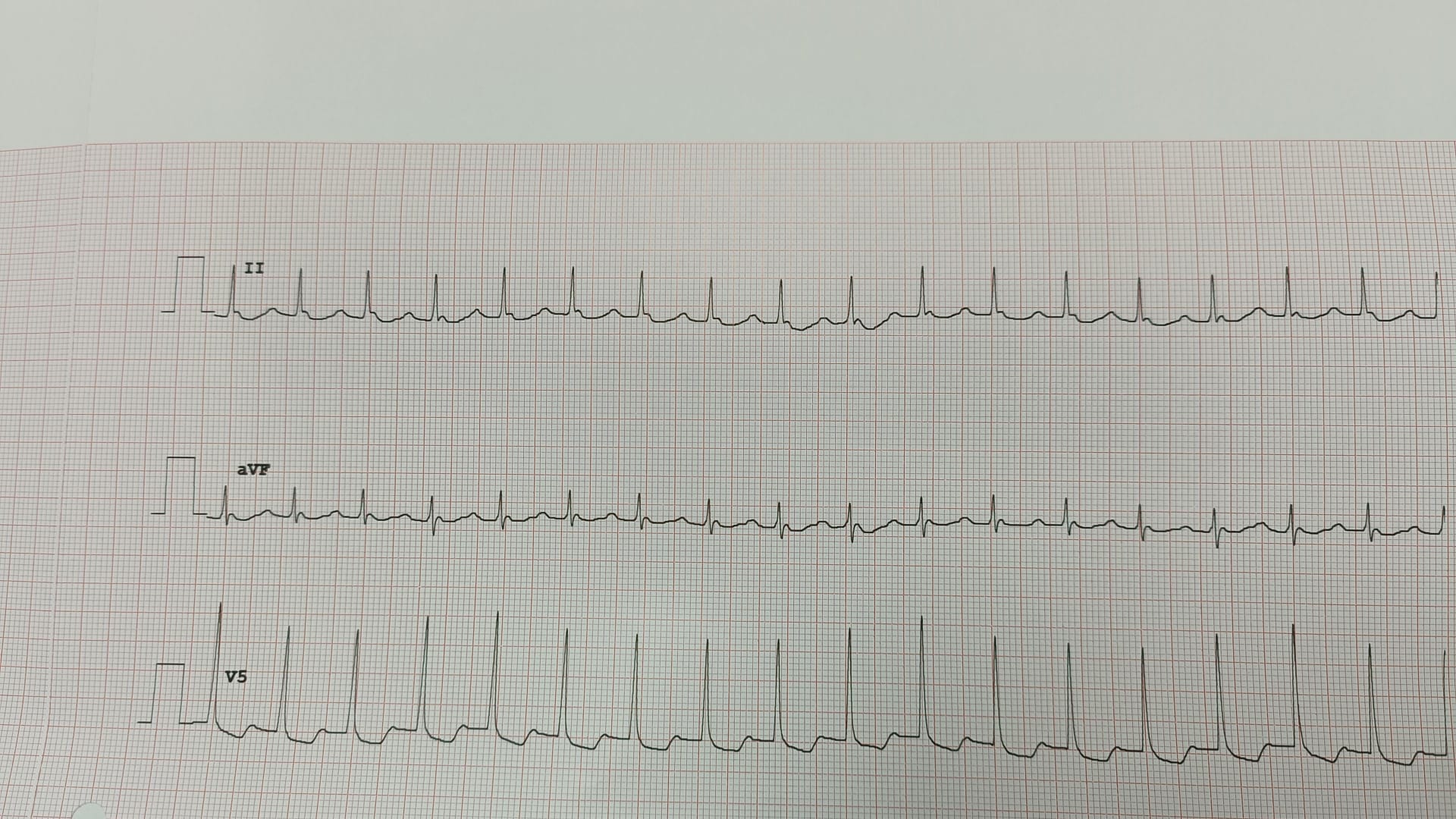 ECG: taquicardia auricular paroxística a 150 lpm.