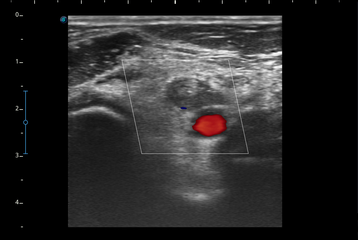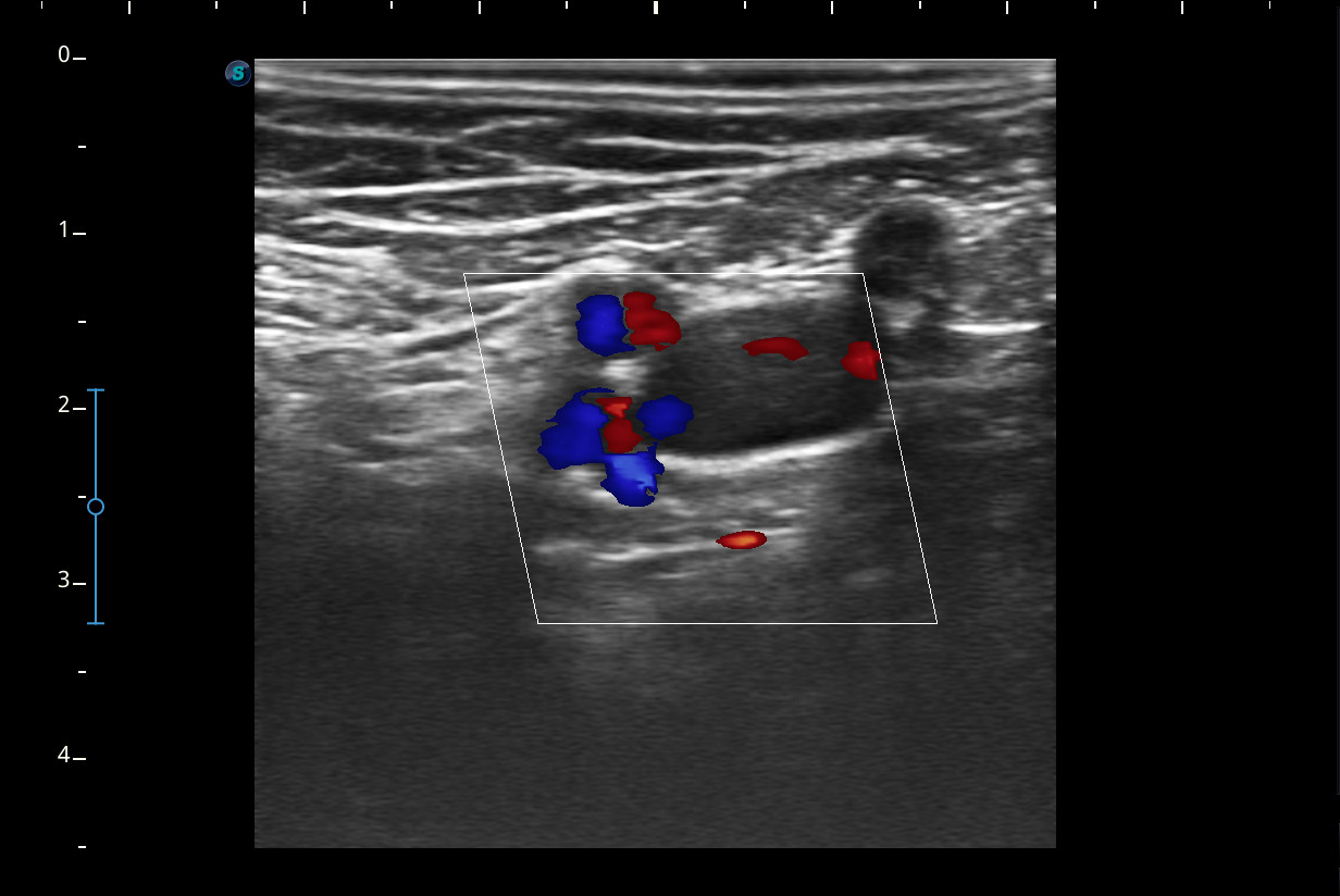 Mujer de 44 años, que presenta desde hace 2-3 semanas dolor e impotencia funcional en la pierna derecha con aumento de volumen y eritema de pantorrilla ipsilateral que en un inicio se trató como rotura fibrilar para la que se pauta reposo y tratamiento analgésico oral. Ha mejorado muy levemente pero persiste dolor en el hueco popliteo e impotencia funcional.Descripción de los hallazgos ecográficos y las imágenes más relevantes para la resolución del caso