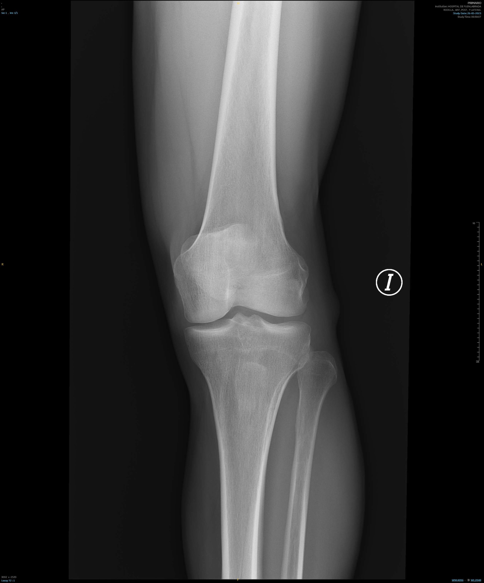 Exp: tumoración indurada palpable en cara lateral de la rodilla izquierda indolora.