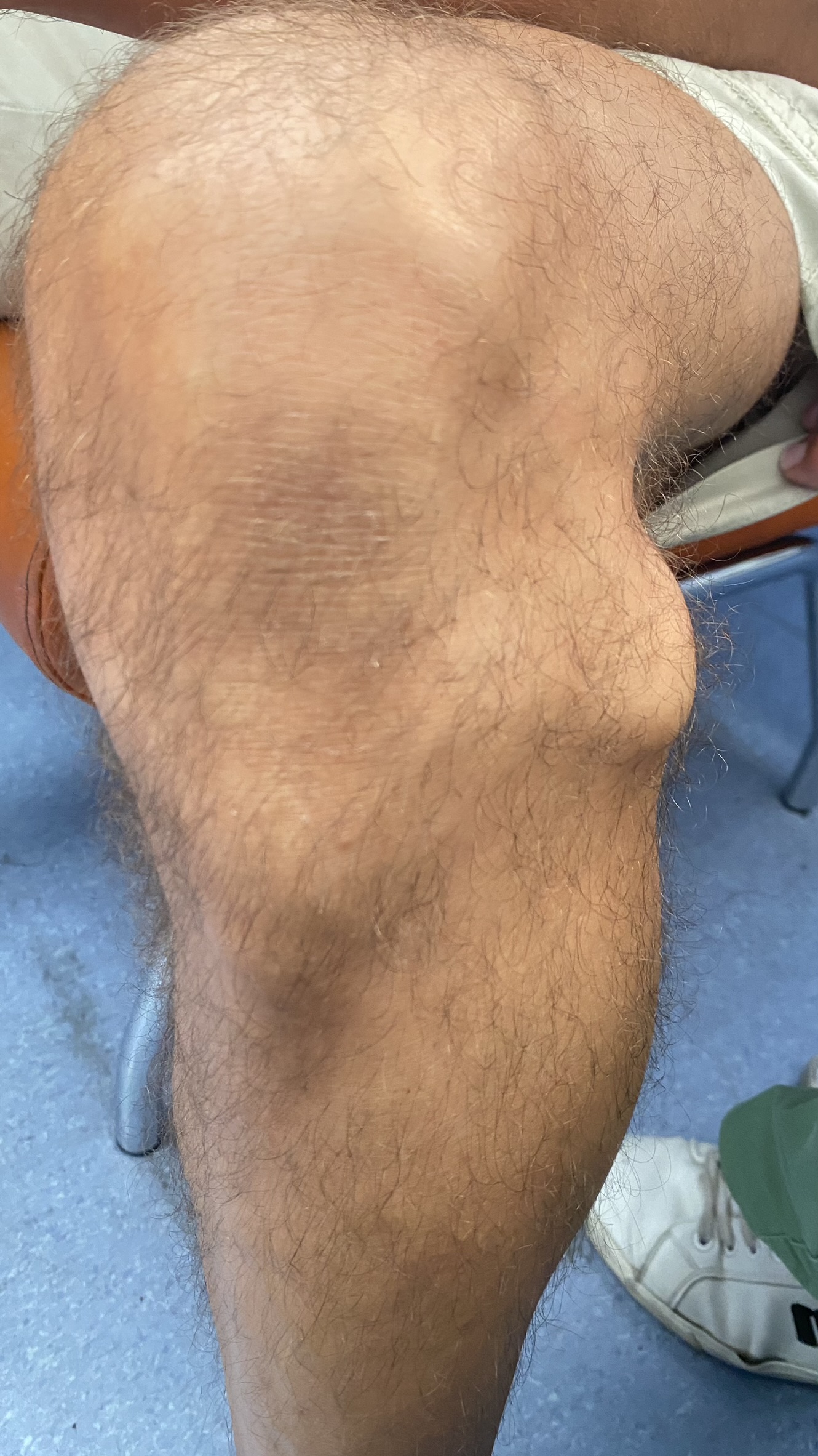 Varón 46 años con tumoración palpable en cara lateral de rodilla izquierda de más de 4 meses de evolución alternante, en relación al esfuerzo.