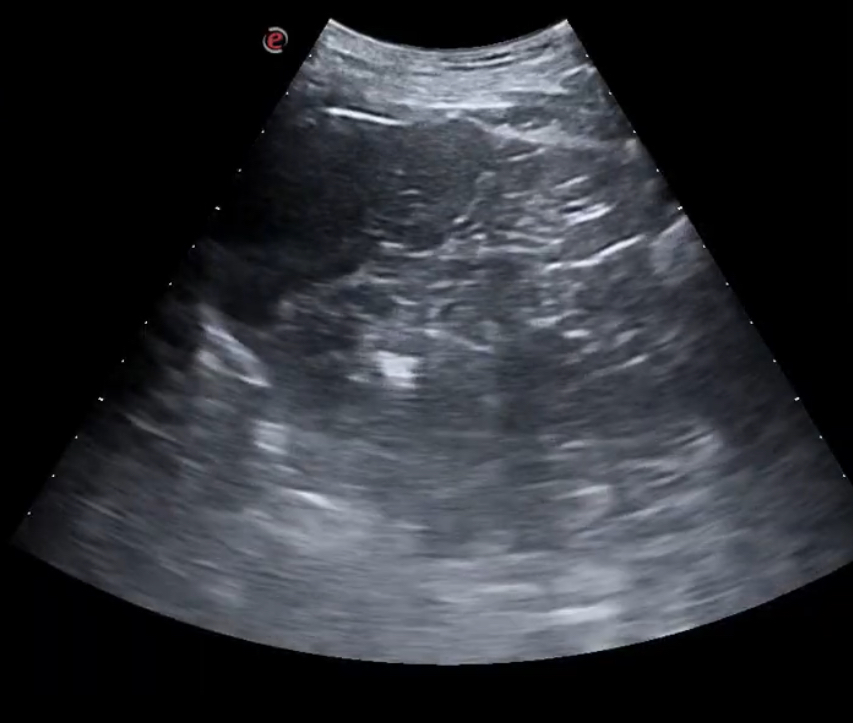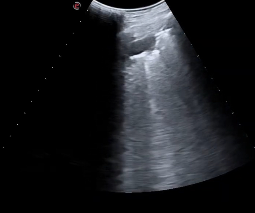 Se realiza ecografía clínica pulmonar observándose un patrón de consolidación en segmento 6 de pulmón derecho con líneas B acompañantes (mayor a 3).
