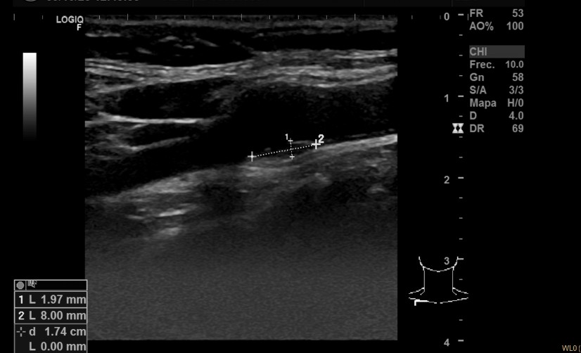 En septiembre de 2025, una nueva analítica muestra colesterol total 319 mg/dL, LDL 180 mg/dL, triglicéridos 352 mg/dl, apoB100 174 mg/dL. Se decide realizar una ecografía multivaso para evaluar aterosclerosis subclínica y reestratificar el riesgo.