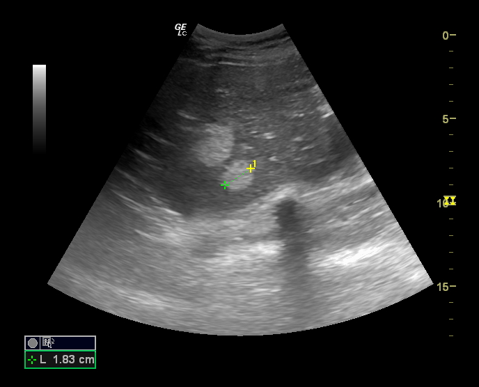 Mujer de 34 años sin antecedenters de interés y sin tratamientos crónicos. Acude a consulta para seguimiento de hemangiomas hepáticos detectados en 2015 de forma casual en ecografía abdominal al realizar estudio por diarreas crónicas por parte de digestivo. Dado que se trata de una lesión benigna sin criterios de intervención quirúrgica en el momento del diagnóstico se decide realizar seguimientos ecográficos. En el centro de Salud hay acceso a ecógrafo y su médico de Atención Primaria realiza ecografías de forma rutinaria por lo que se decide realizar el seguimiento desde la propia consulta con medición de lesiones de forma periódica, realizando derivación en caso de crecimiento con criterios de intervención.