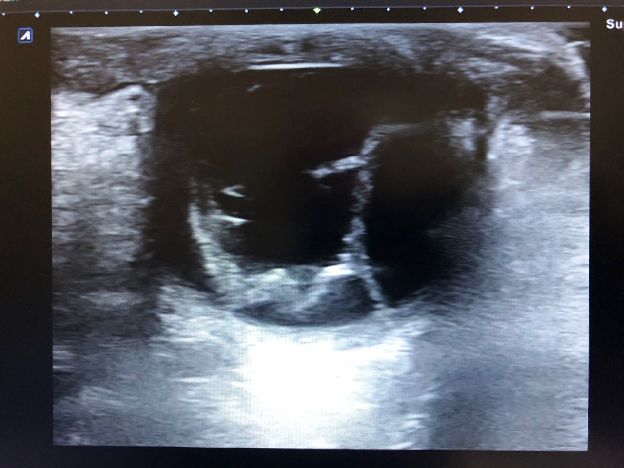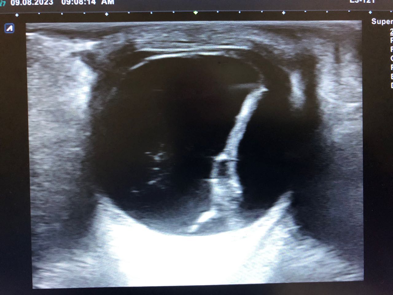 Se confirma desde Oftalmología el diagnóstico: Desprendimiento de retina casi completo junto a desprendimiento de Coroides temporal en OI de contenido hiperecogénico, no se aprecian masas.