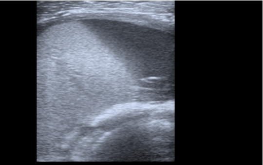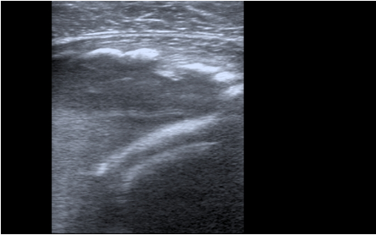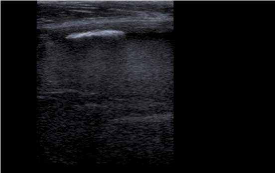 Anamnesis: escolar de 11 años, que acude a consulta derivado desde su fisioterapeuta de ámbito privado, ante hallazgos en ecografía clínica relacionados con tumefacción en miembro inferior izquierdo, tras traumatismo deportivo hace una semana. El paciente se encuentra paucisintomático, con leve dolor a la movilización y tumefacción que limita el balance articular completo.