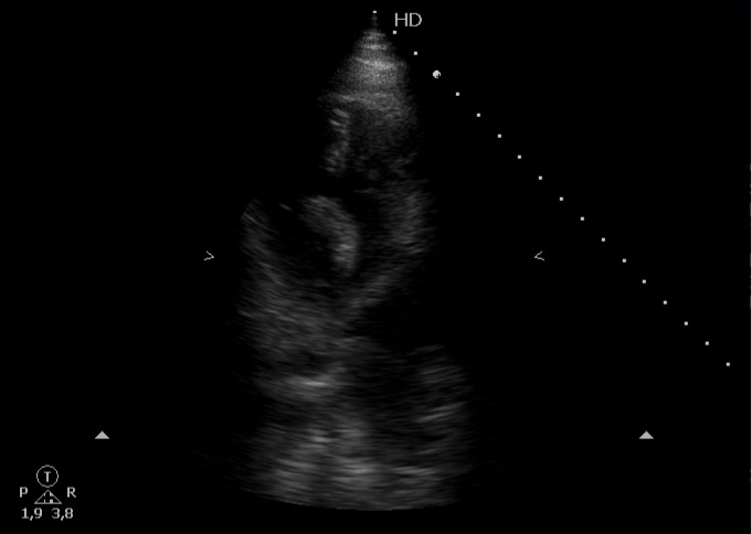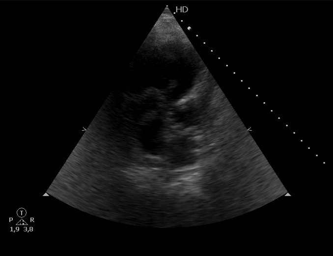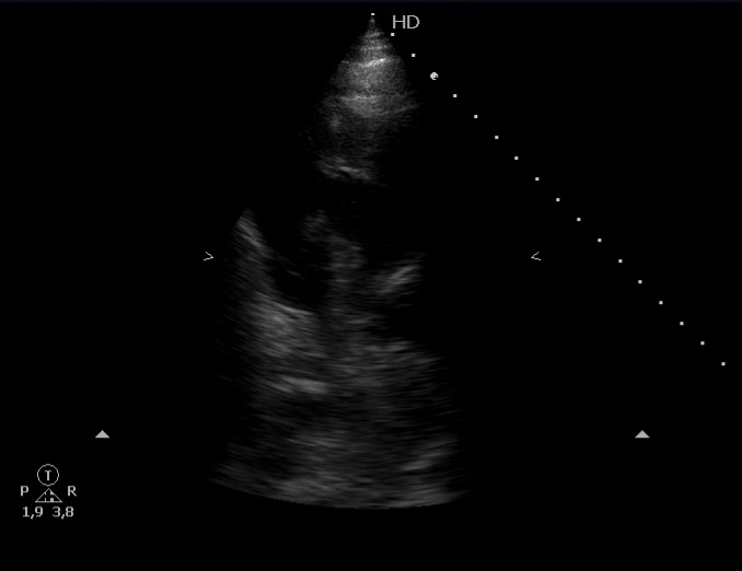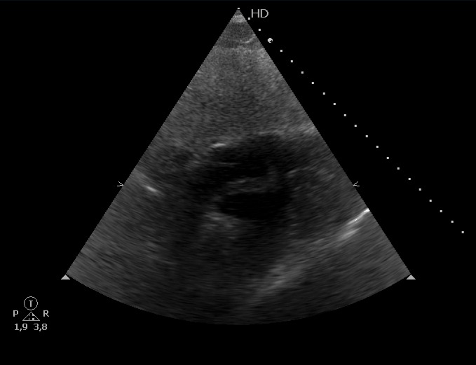 Escalas de riesgo probable para tromboembolismo pulmonar, cursando prueba de imagen que confirma patología y ampliando estudio con ecografía cardíaca que muestra presencia de émbolo intracardíaco.