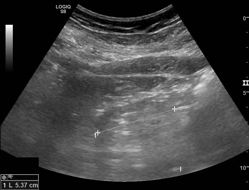 Ante hipertensión arterial (HTA) mal controlada a pesar de tres fármacos, y empeoramiento de la función renal, se realiza diagnóstico de HTA resistente y se realiza ecografía clínica en consulta de AP, donde se objetiva imagen hipoecogénica ovalada paraesplénica 5.3cm, sospechando atrofia renal izquierda; con riñón derecho conservado.