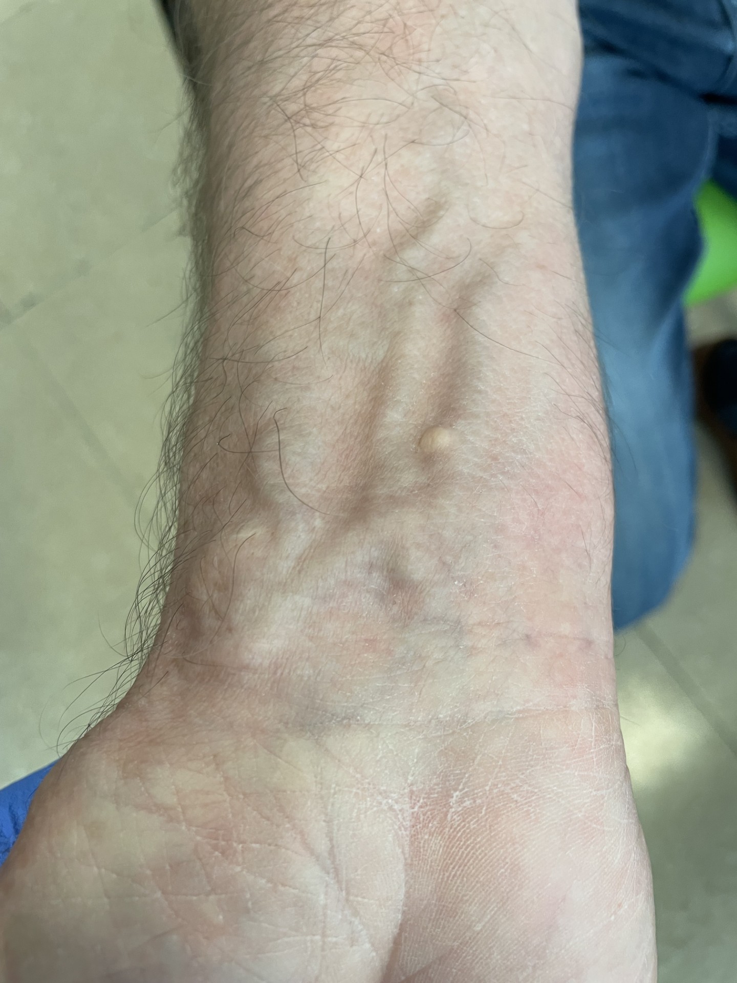 Dilatación de vasos en la muñeca derecha.
